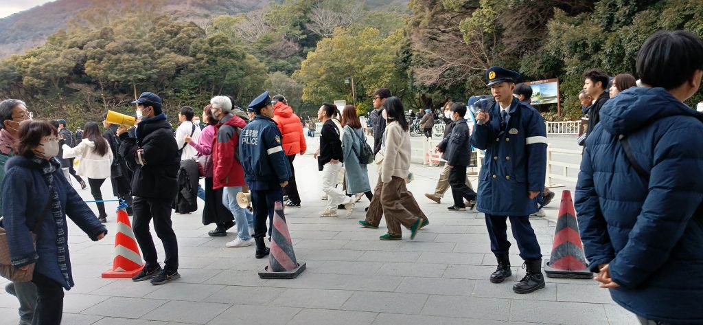 高市総理が参拝を終えたのか手荷物検査をされてやっと参拝に向かいました。
