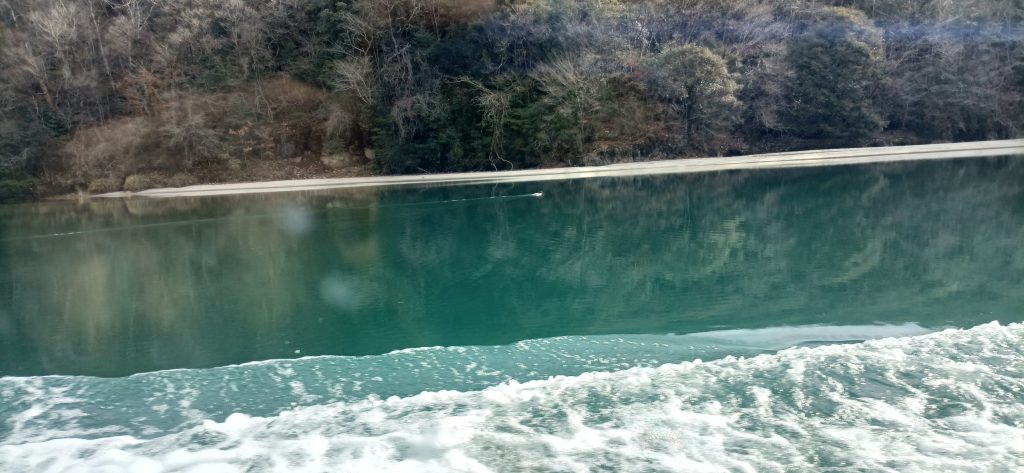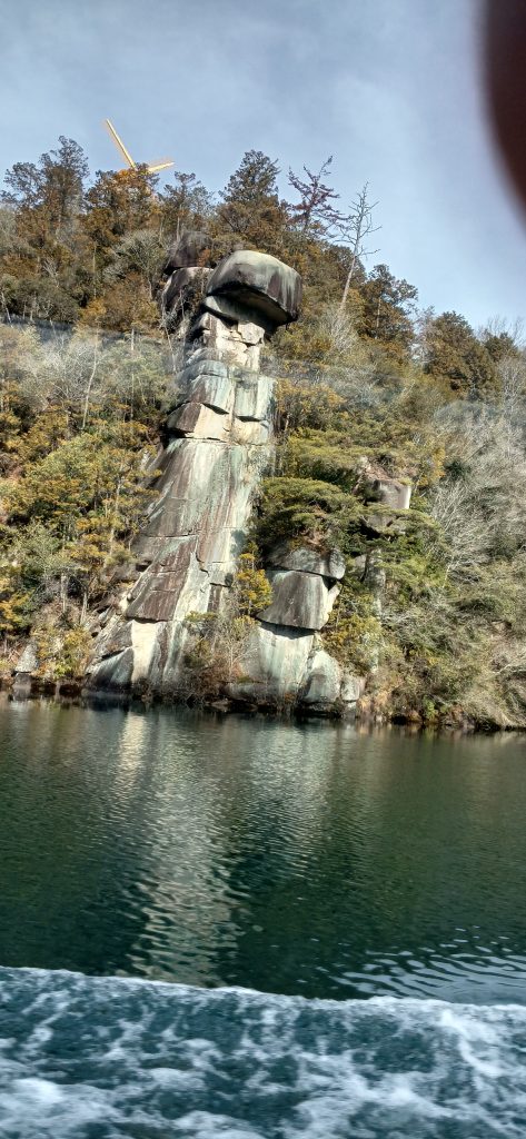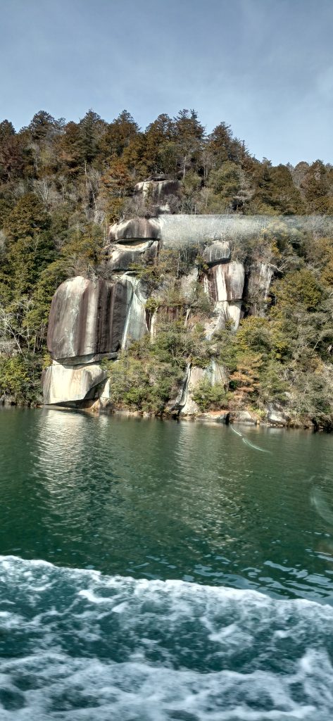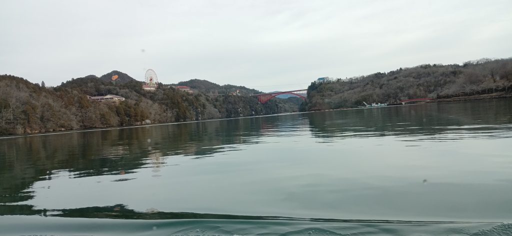 翌朝歩いて5分ほどの所にある恵那峡遊覧船で恵那峡を往復して30分のクルージングを楽しみました。