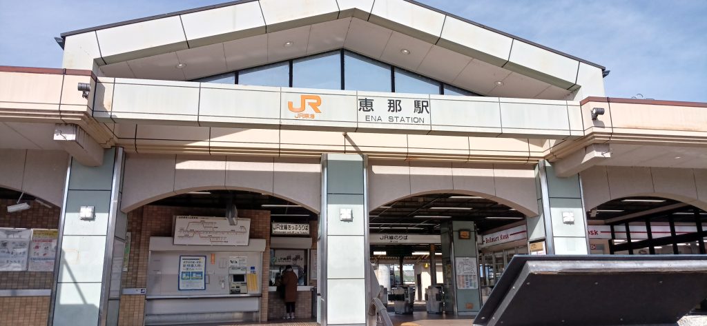 翌朝朝食後送迎バスで賢島駅まで、そこから近鉄特急で名古屋駅までいき、JR中央本線で恵那駅に到着。4時間半ほどの道行。