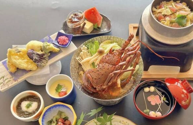 温泉に浸かった後伊勢海老会席料理をいただきました。